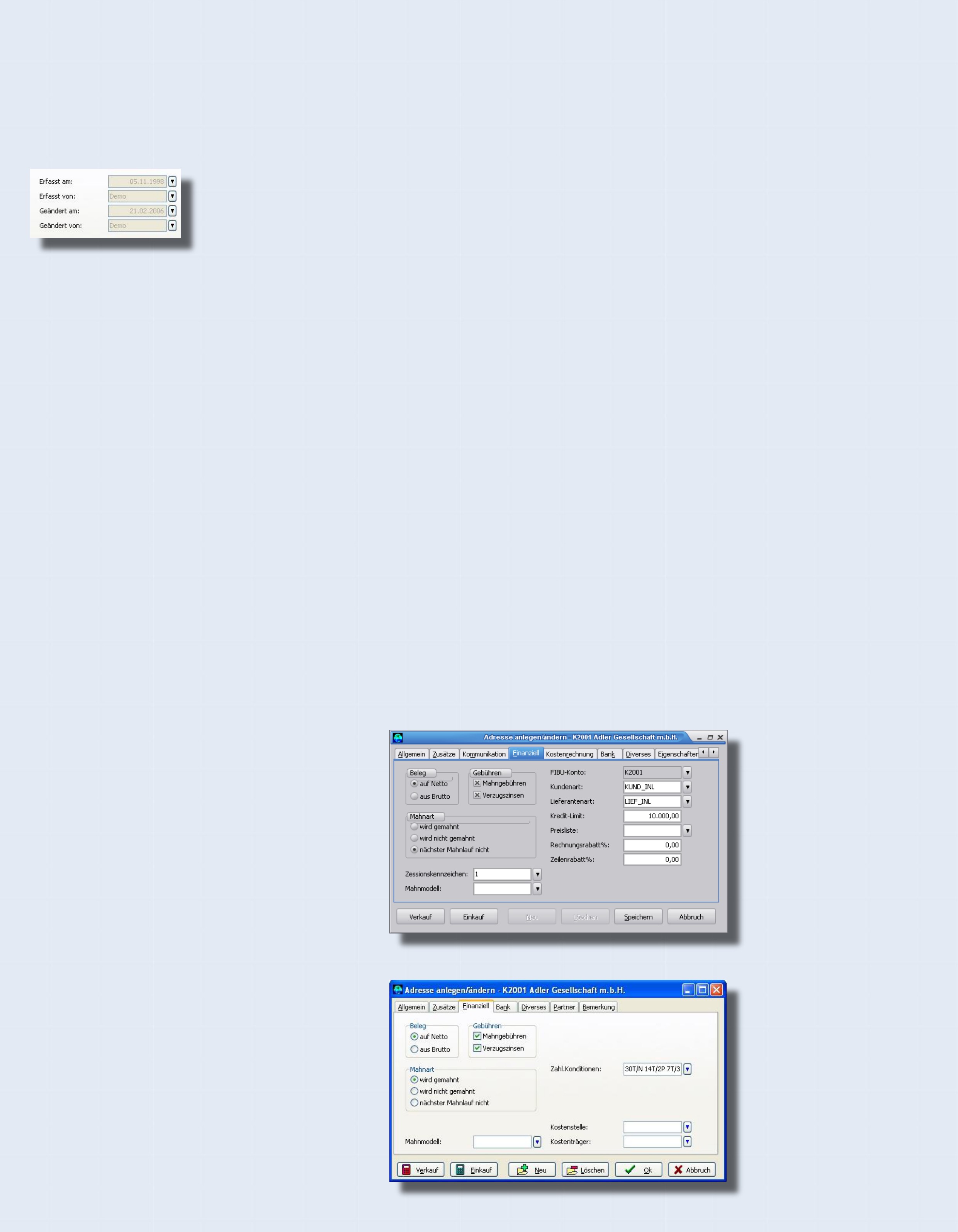 Kundenart, Lieferantenart, Kreditrahmen,