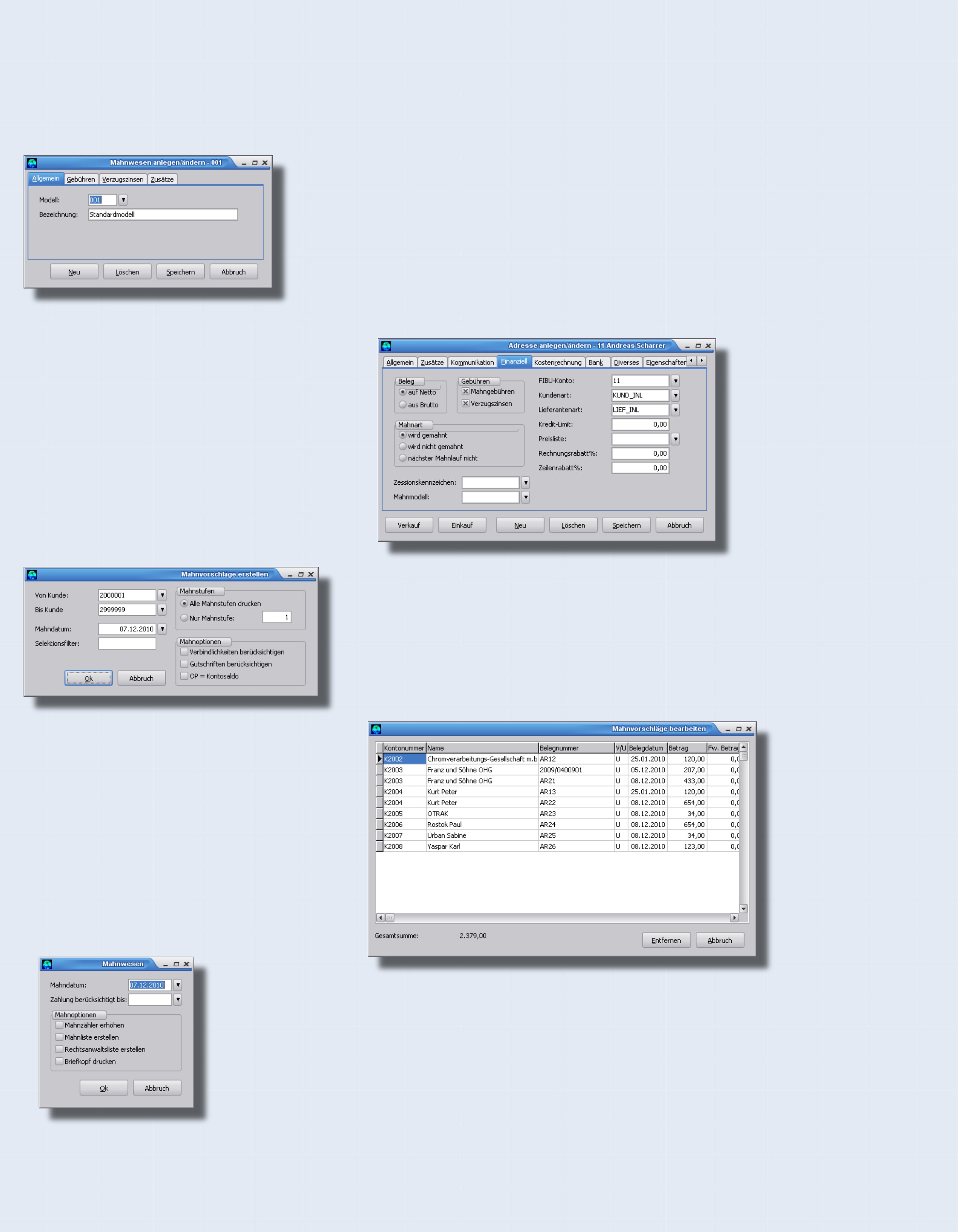 bzw. Gutschriften aus, die Sie im Mahnwesen