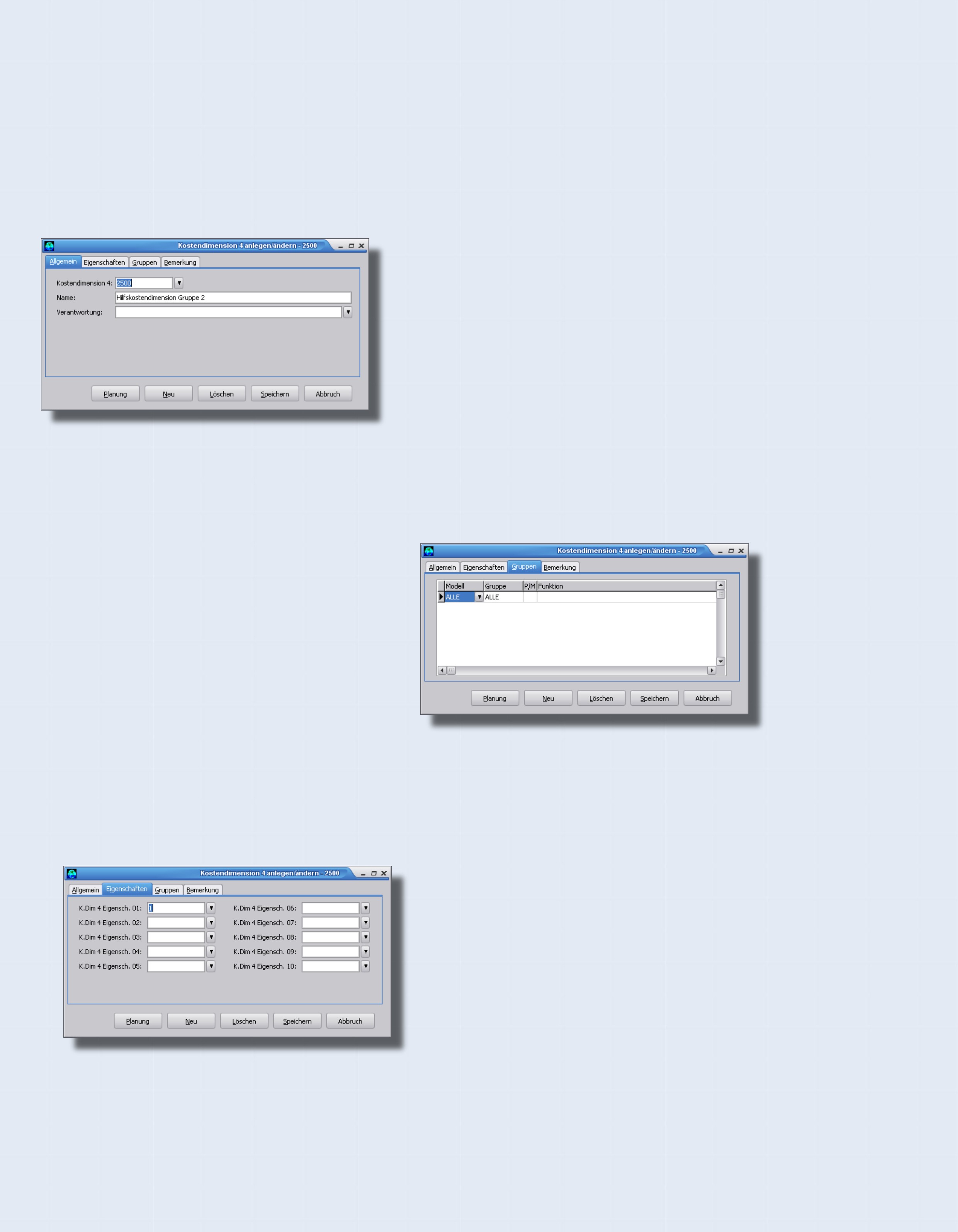 Kostendimensionen ausgeführt als Hilfsdimensionen an. Weitere Auswertungen nach Projekten, Filialen,