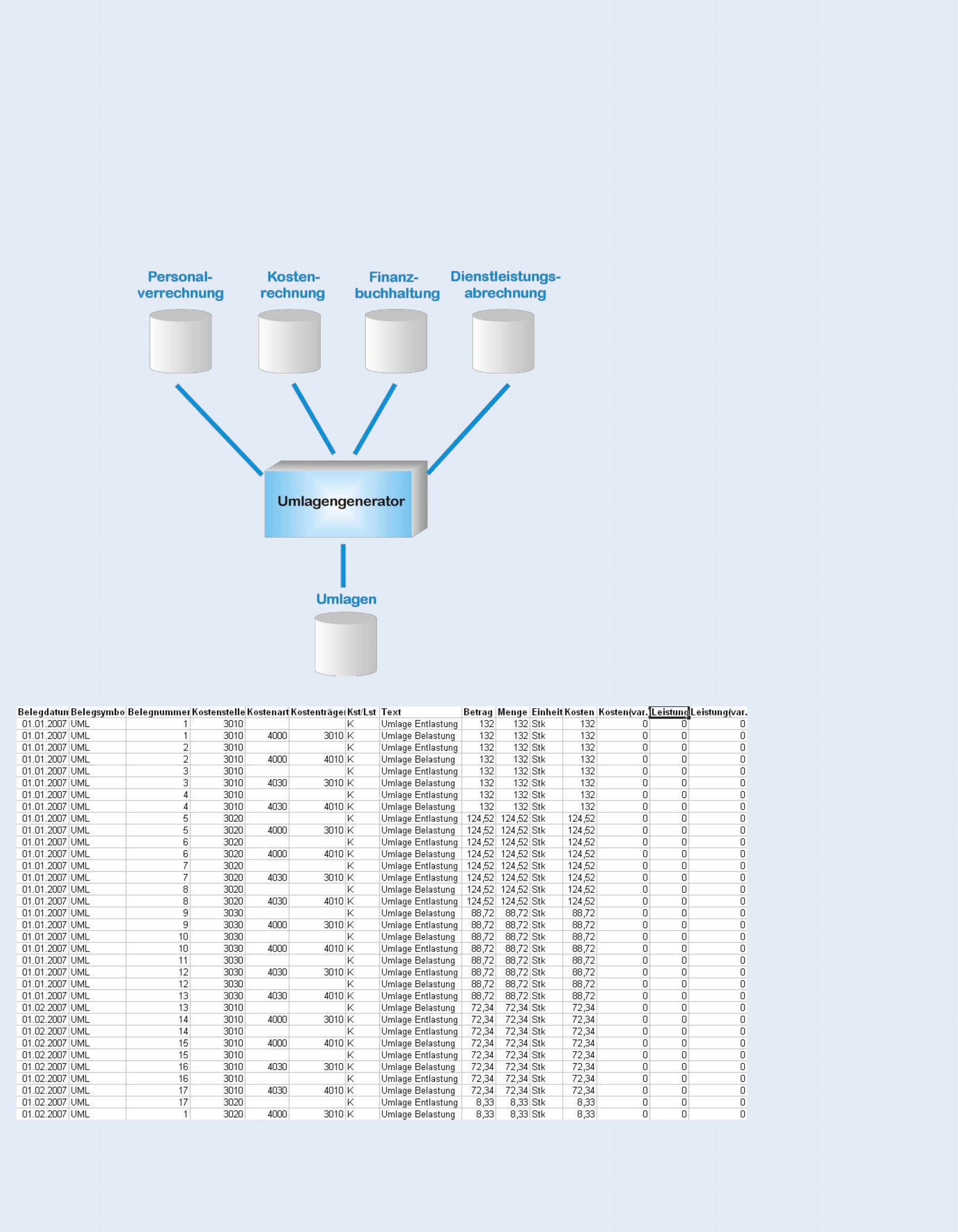 Systeme Kostenumlagen zu verwalten zur Verfügung. Aus unterschiedlichen Datenquellen werden mit