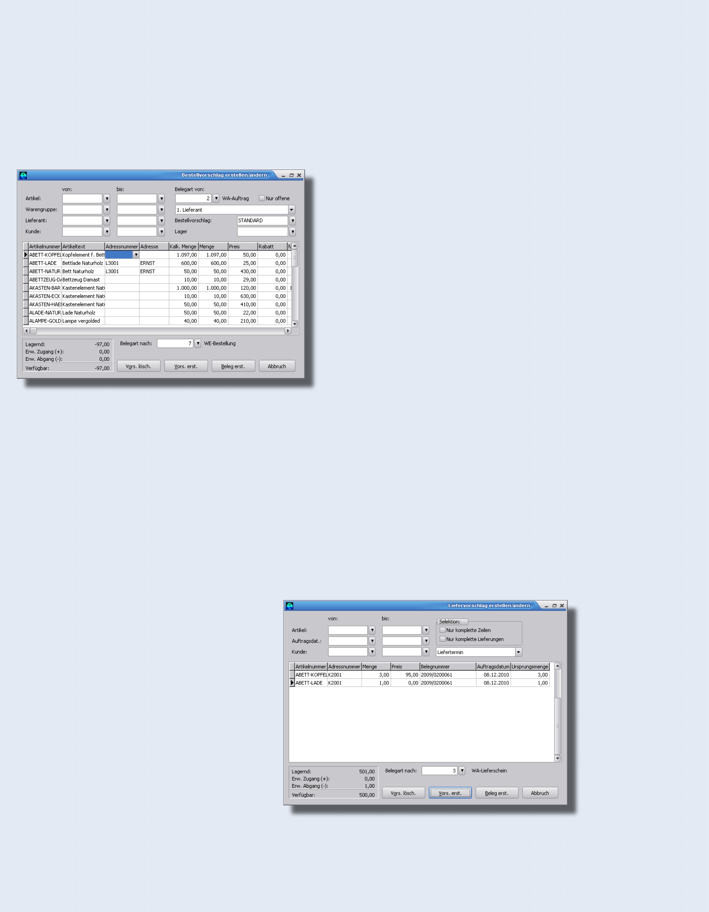 Unser Modul „Liefervorschläge“ verwaltet Ihre offenen Aufträge. Aufgrund der Lagerbestände kann eine