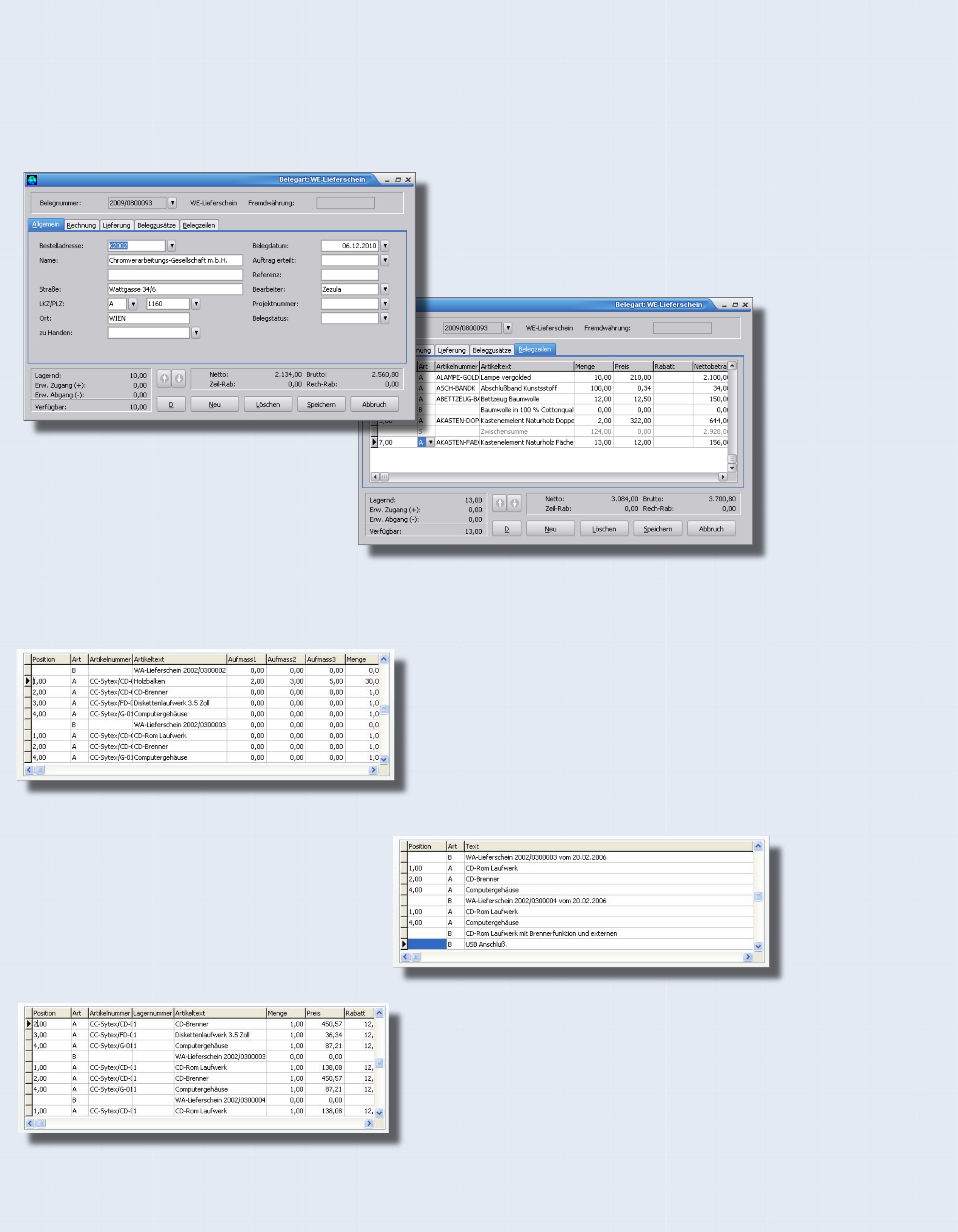 Belegzeilen mit Lagerzuordnung