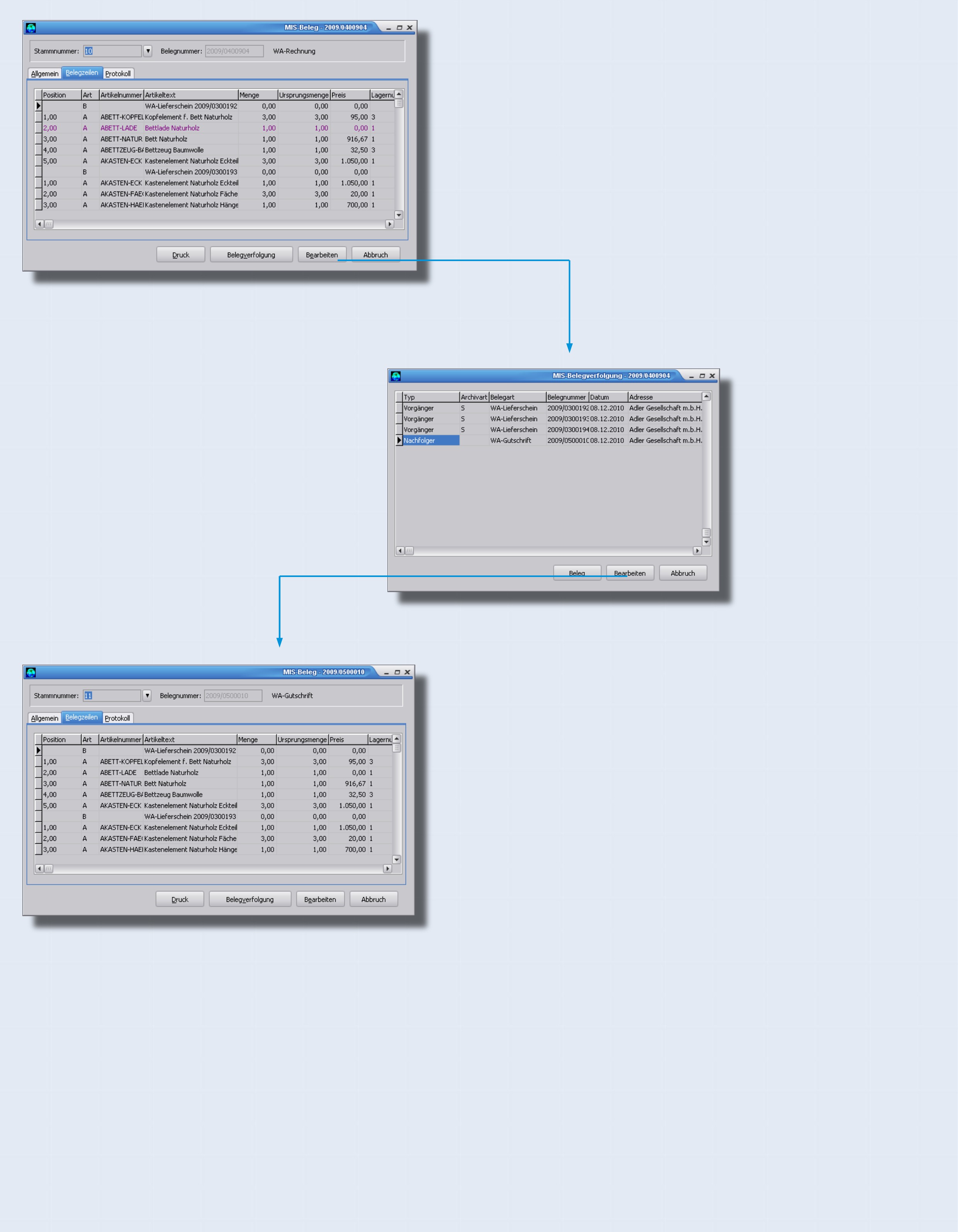 Belege und weiter zur Belegverfolgung.
